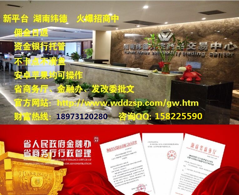 国内小平台陆续倒闭,大平台陆续的整顿, 你还是为找平台而发愁吗? 10月整顿风暴 纬德力挽狂澜! 一直被模仿 从未被超越!成功绝非偶然 实力证明一切 ! /纬德大宗火爆招最高条件优质会员、代理商、渠道! /最新上线3倍波动燃油9个点、原油9个点、白银9个点、铜、钯金(都无点差) /湖南省唯一完整手续双批文下来!商务厅、金融办双批文【国家工商局监管】政府网站批文可查询! /四大银行(建、工、农、招)托管、可柜台签约 建行席位号4300000199 资金安全 秒进秒出! /高条件,独立后台,独立自由开户! /政府批文,1亿元资金实力保障! /金智、彭博软件 不卡 不滑 (支持安卓、苹果手机版)无任何限制单 /全国首家打通500万无限制微信交易实盘操作 远超传统微盘2万限额瓶颈,每单都在L2行情软件中查到! /交易中心软硬实力强大!比服务比在市场口碑和信誉!比在市场谁走得更长活得更久! /欢迎各同行业朋友参观考察! 咨询QQ:158225590 电话(微信):18973120280 www.wddzsp.com *无缝衔接对北商,北油,大圆,东北亚,湘商,华夏代理商 十月全国金融清理整顿月,湖南纬德全国火爆招商更上一层楼!