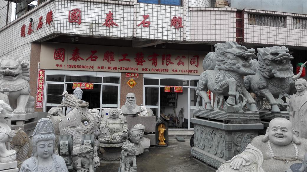 惠安雕艺源远流长,源于黄河流域的雕刻艺术融中原文化、闽越文化、海洋文化于一体,汲晋唐遗风、宋元神韵、明清风范之精华,形成精雕细刻、纤巧灵动的南派艺术风格,与建筑艺术交相辉映,成为中华优秀传统文化的一朵奇葩! 在国内,它与曲阳石雕齐名,"南有惠安,北有曲阳"之说在石雕界广为流传, 生产工艺在传统工艺的基础上,成功吸收国外先进的生产设备与工艺,形成完整的产业体系,精美绝伦的石雕产品远销世界各地, 在国内外享有很高的声誉! 国泰石雕座落于美丽的洛阳镇,名闻遐迩的中国四大古桥之一的洛阳桥畔,毗邻324国道,南距厦门港120公里,北距惠安,崇武仅几十公里,处于闽南石雕生产基地的中心区域,交通条件十分便捷! 国泰石雕厂秉承闽南传统的优良工艺,精益求精,在保持与发扬传统雕塑艺术之精华的基础上,又赋于了现代雕塑的时代气息!自建厂以来,,坚持”质量至上,追求完美,诚信发展,止于至善”的经营理念, 不断开拓进取,现已发展成一家集开发,生产,销售于一体的多元化经营的大型雕塑企业,我厂技术力量雄厚,工艺设备先进,产品工艺精湛,独具特色,远销全国各地及东南亚各国,受到广大客户的一致好评! 主要经营产品:石狮,麒麟,圆雕,浮雕,栏杆,壁炉,龙柱,,凉亭寺庙装饰,园林装饰,市政工程,石雕牌坊,人物雕塑,