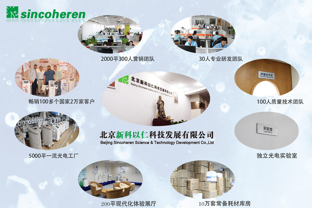 北京新科以仁科技发展有限公司(sincoheren)成立于1999年!是国内较早从事医用激光和强脉冲光的研究、开发、生产和销售的高科技厂家。新科以仁位于北京市海淀区中关村高科技带内,下设研发部、销售部、生产部、质量技术部、综合部等部门,生产厂房5000平米,办公面积2000平米,现有员工300人,近年来,公司通过技术创新和优质服务迅速占领国际市场,年销售额上亿元。 咨询电话:18500639201